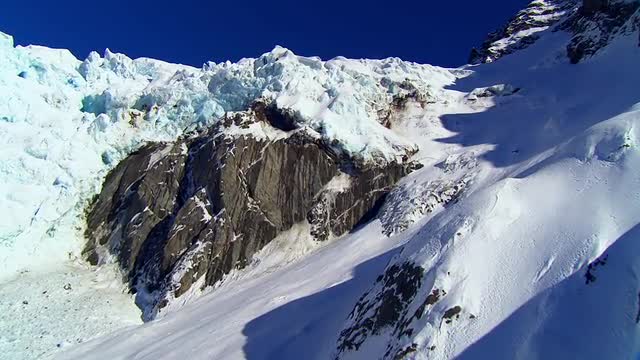 Flying over ice fields in New Zealand,