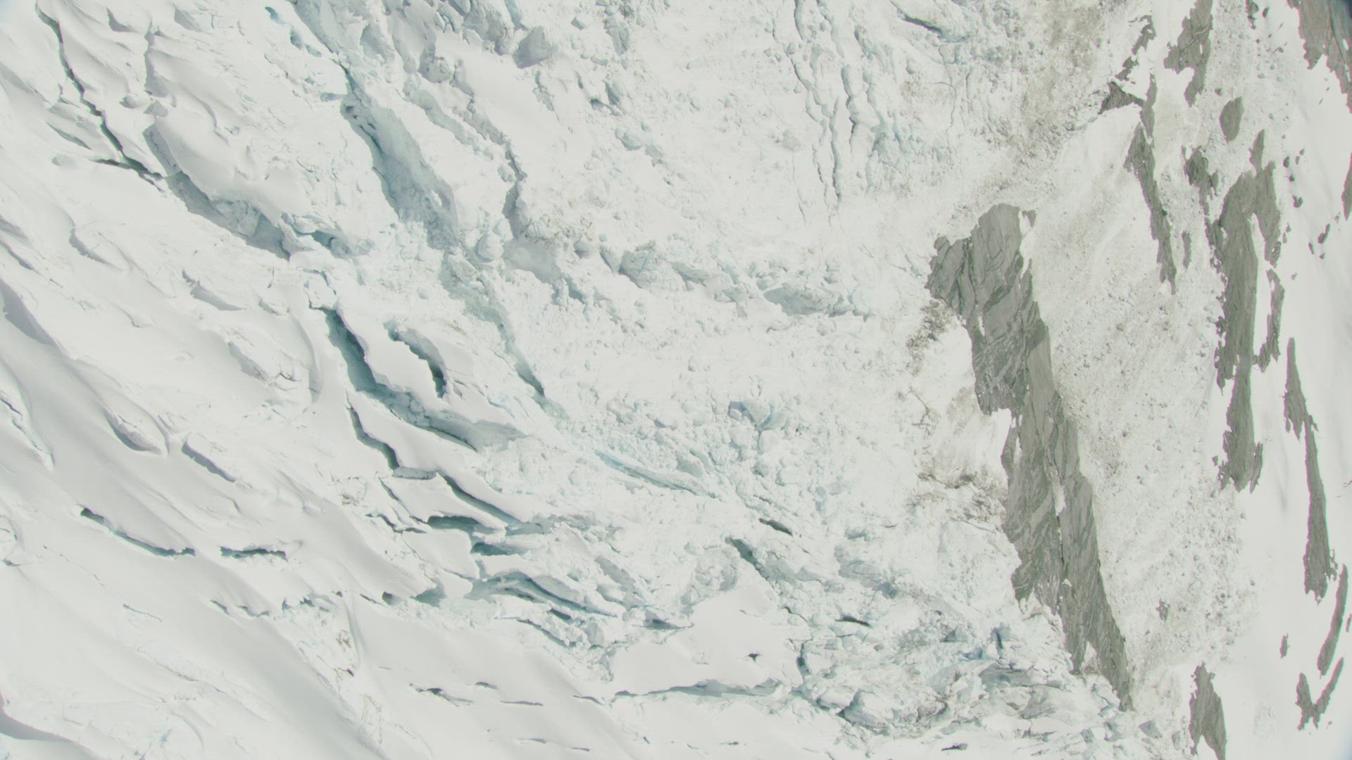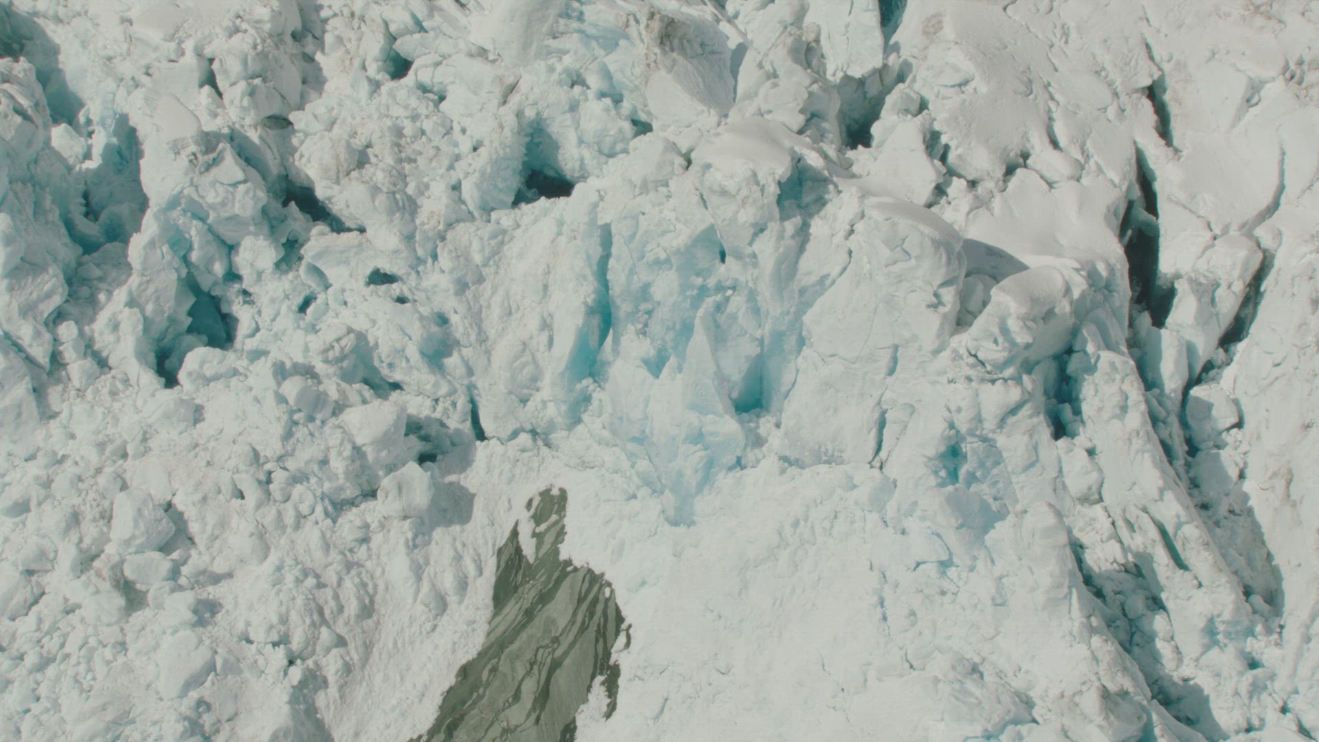 Aerial over ice field in New Zealand