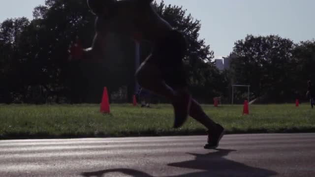 > Super slow motion close up of athlete grabbing his knee and performing a stretch.