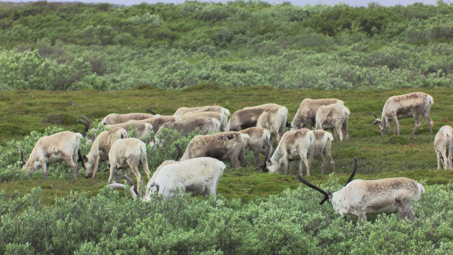 165055 - Svalbard Reindeer, Rangifer tarandus platyrhynchus resting on the tundra in Longyearbyen on Spitsber