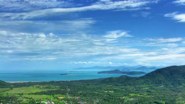 Green Valley to the sea and islands in the distance over which the clouds float time lapse loop