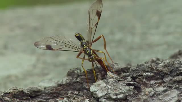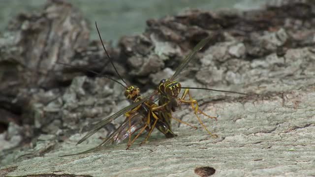 > Giant Ichneumon (Megarhyssa macrurus) wasp male insemination 3
