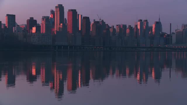 NEW YORK - MARCH 9: A New York Water Taxi boat heads south on the Hudson River past the skyline of mid-town Manhattan on March 9, 2013 in New York.