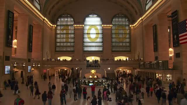 The clock on top of the information booth in Grand Central Terminal, in New York City. The clock, a famous meeting place, was manufactured by Seth Thomas.