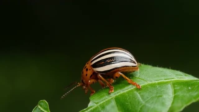 A False Potato Beetle (Leptinotarsa juncta) feeds on a Bittersweet Nightshade leaf.