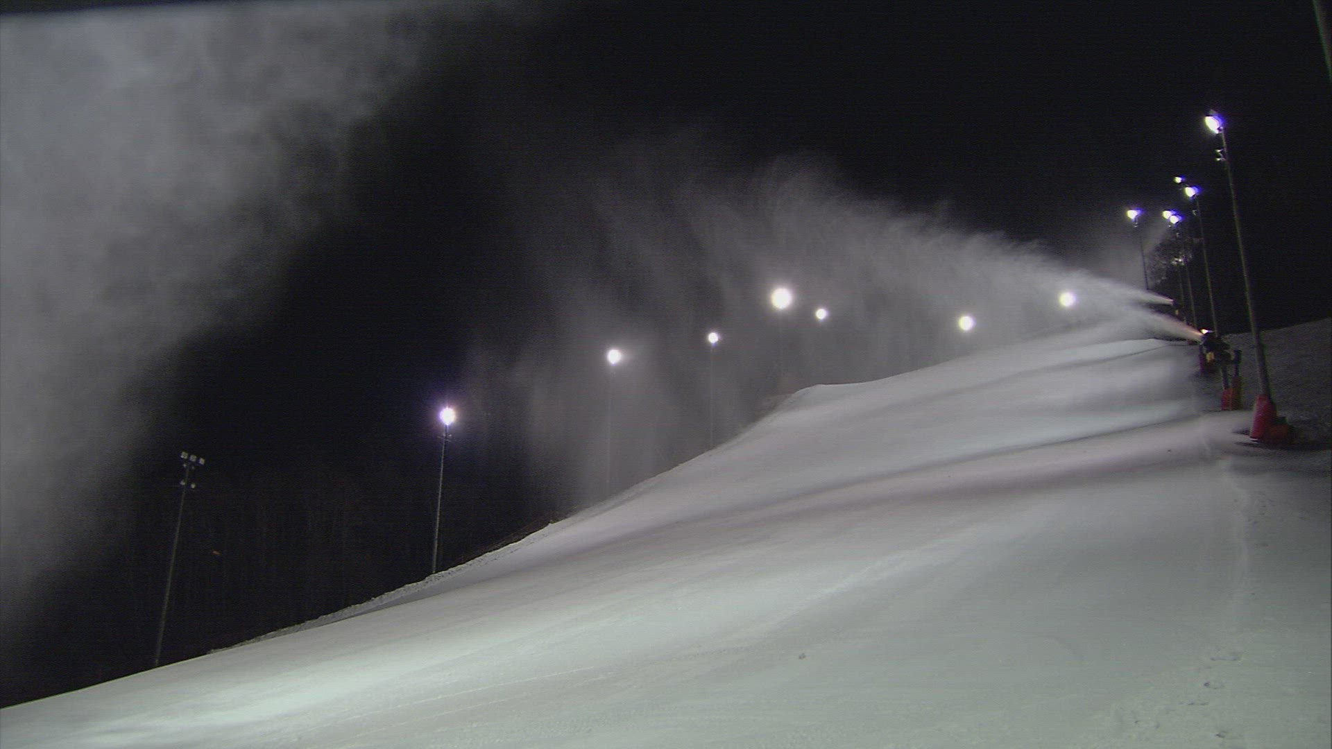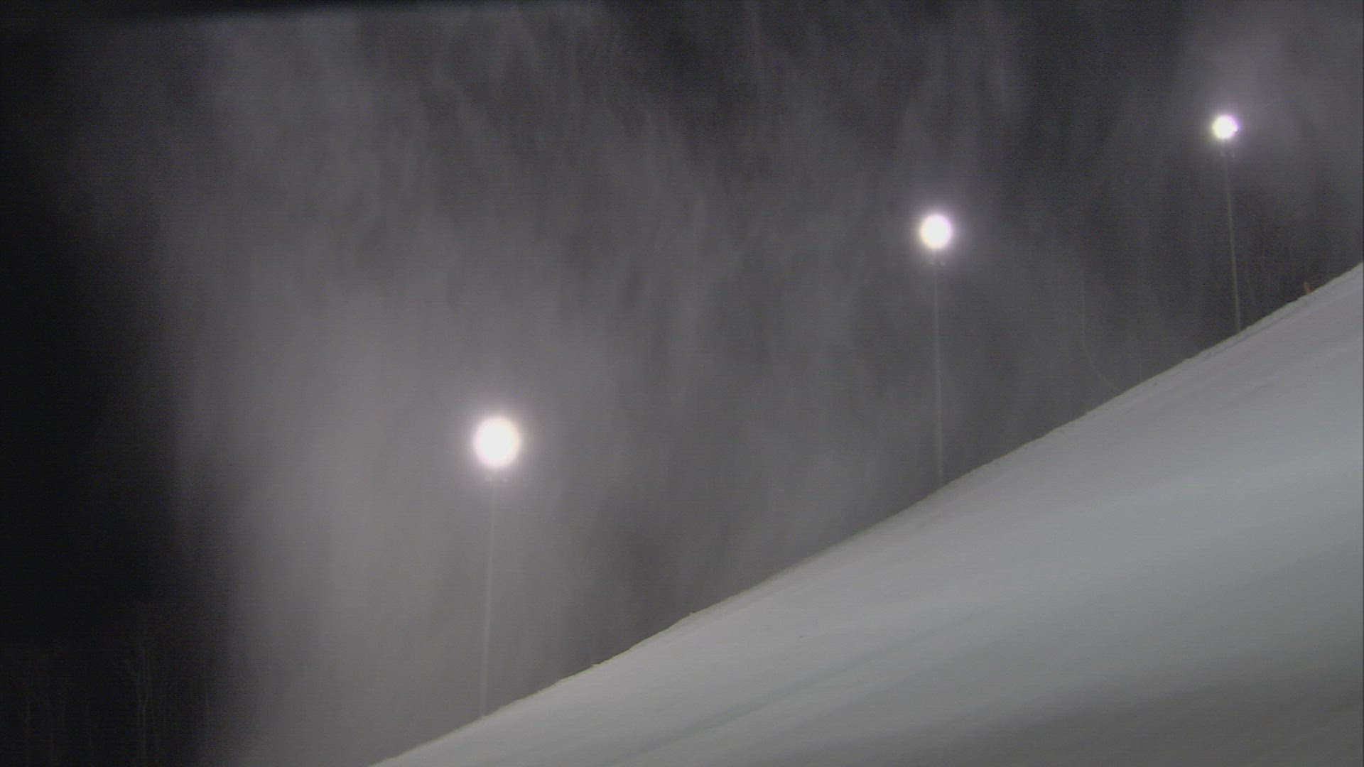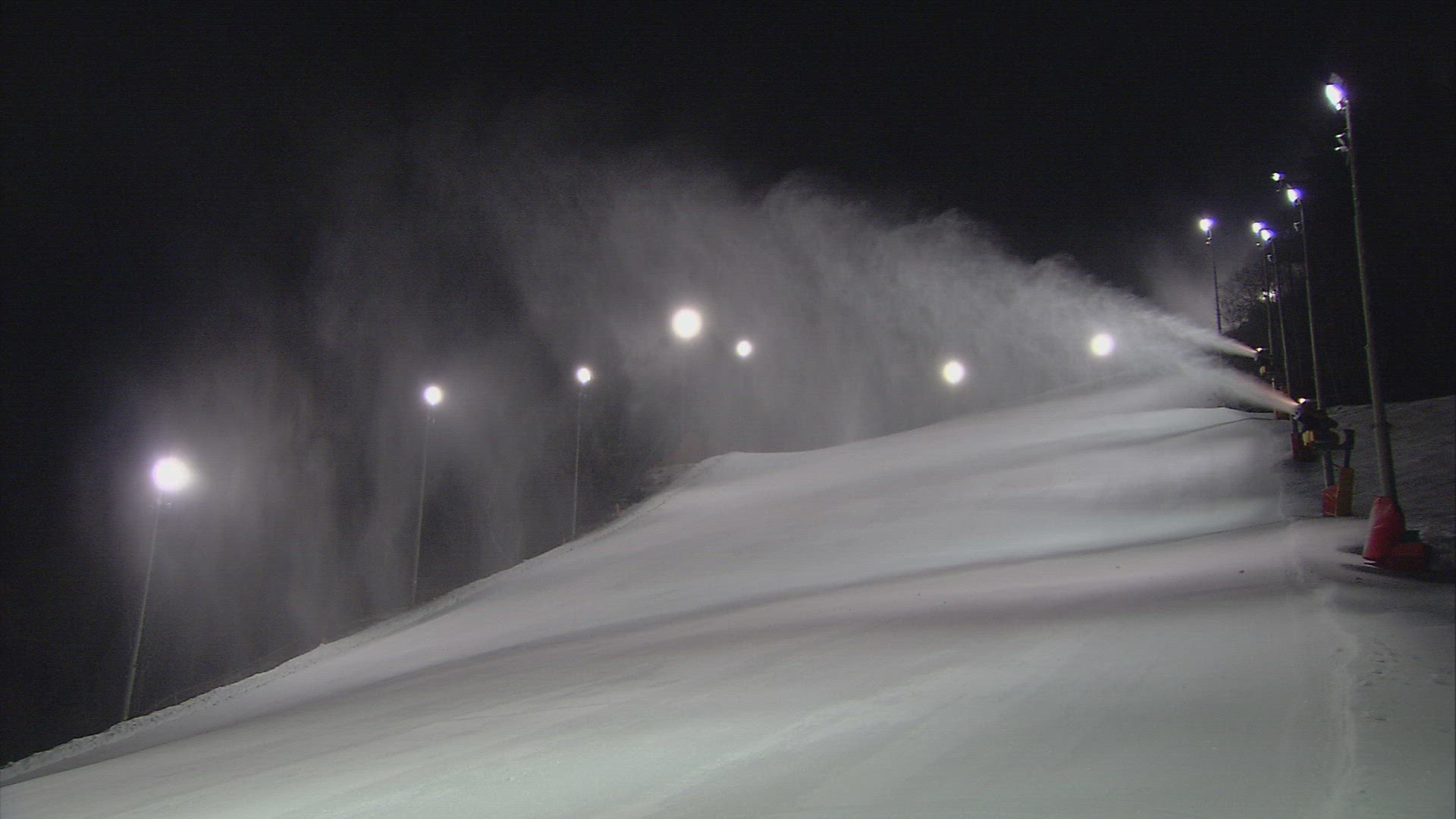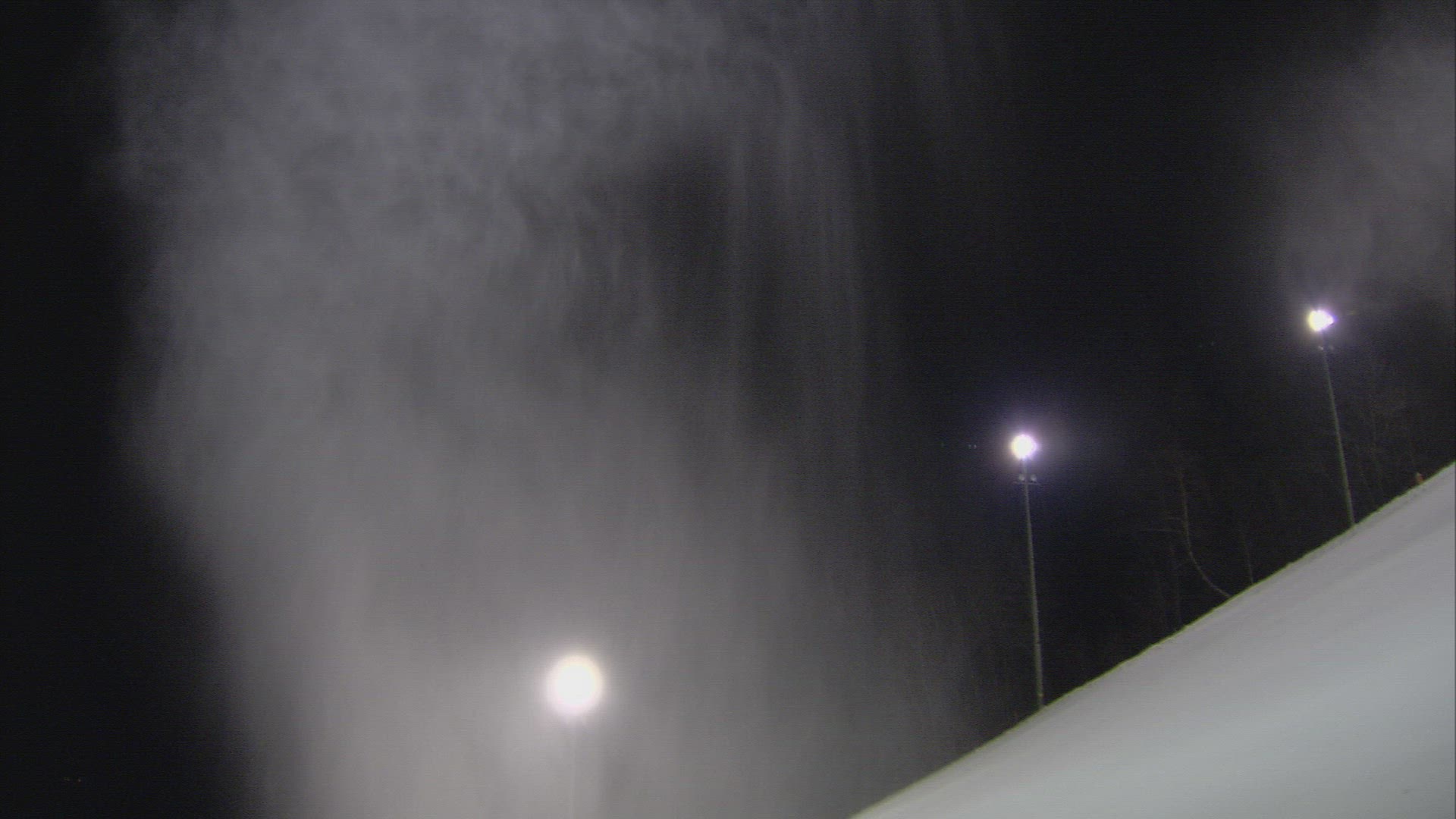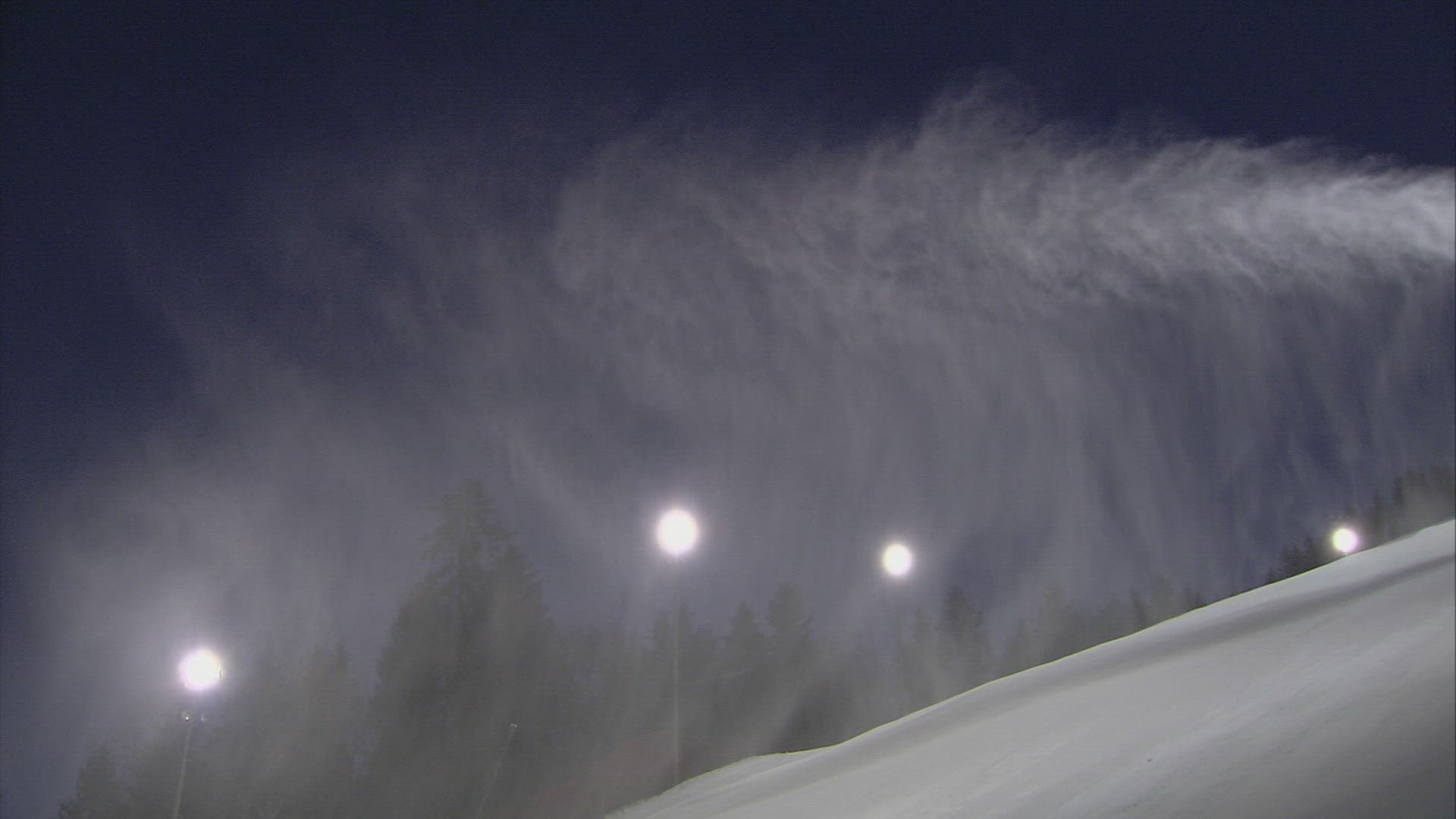 Snow groomer working in a ski resort by night. Shot with RED Epic.