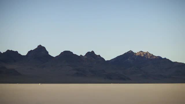 91997 - Slow motion dusk shot of cowboys riding towards mountains.