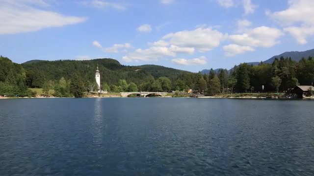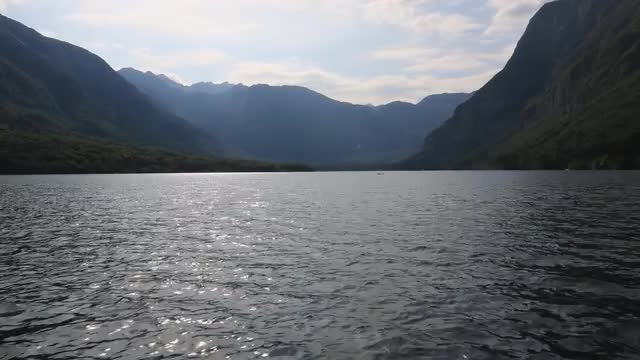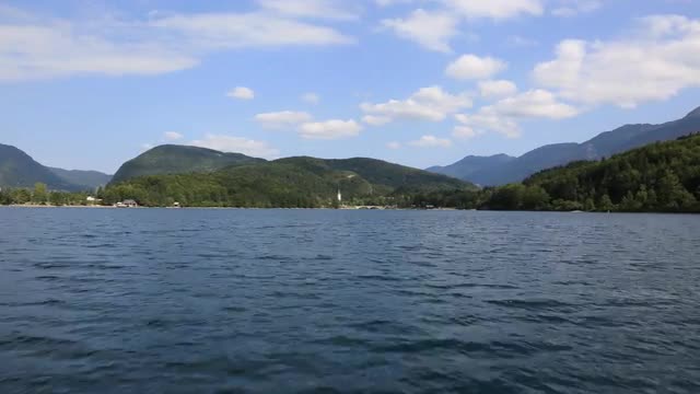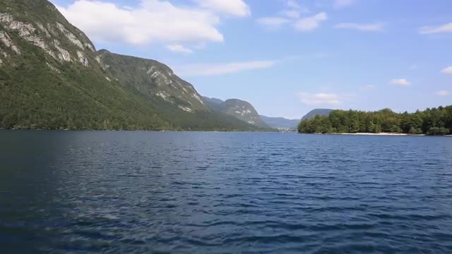 Dolly across rocky granite shoreline.Waves crash and clouds are seen moving overhead and through reflection in water. 4K timelapse with 6ft slider move.