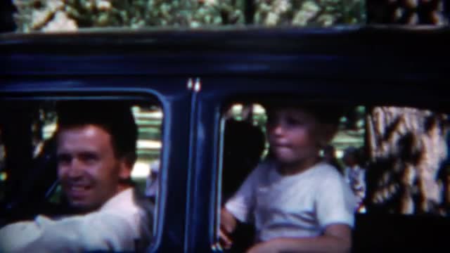 SPRINGFIELD, MISSOURI 1953: Family driving off in new car into the suburban-scape.