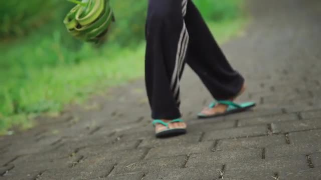 407005 - Woman Walks Up Hill In Sandals