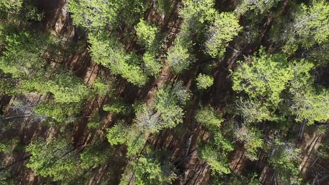 804599 - Aerial view looking down at colorful forest flying towards trees