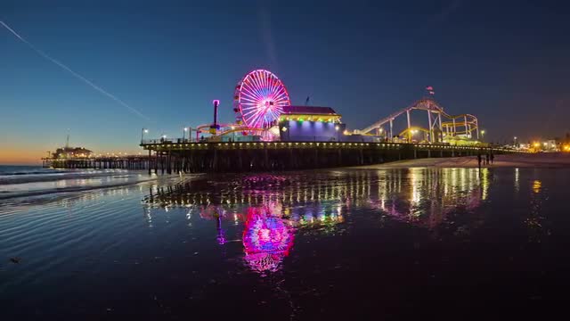 Santa Monica Pier night time-lapse #2 - 4K 23.97 FPS