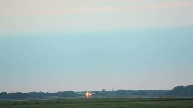 NOVOSIBIRSK, RUSSIAN FEDERATION - AUGUST 21, 2015: Airbus 320 S7 Airlines landing, early morning. Oficial spotting in Tolmachevo airport (OVB) , on Aug.21, 2015