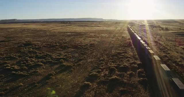 667554 - Aerial view of freight train in desert, Gallup, New Mexico, United States