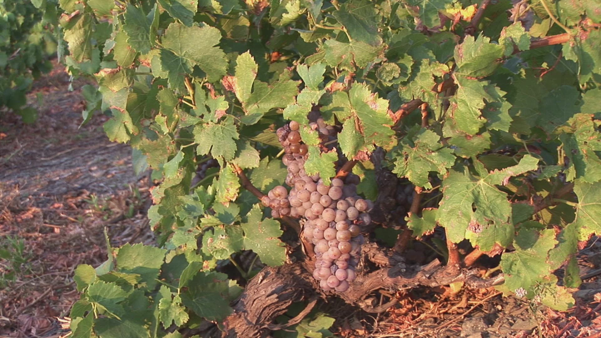 279280 - Sun-Flared Shot Of Vine Leaves And Grapes In Vineyard