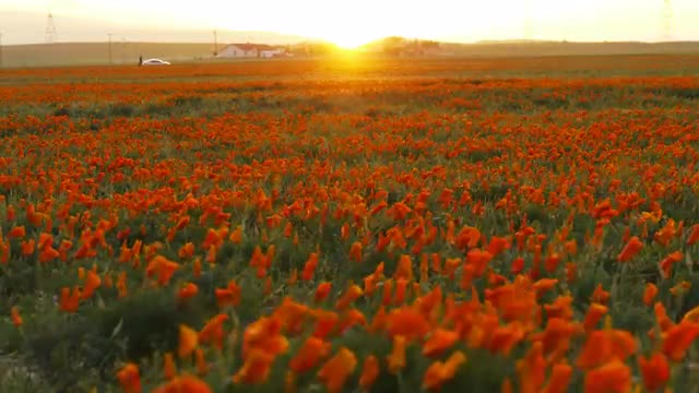 212722 - Time Lapse of California Poppy Wild Flower at Full Bloom in Sunset