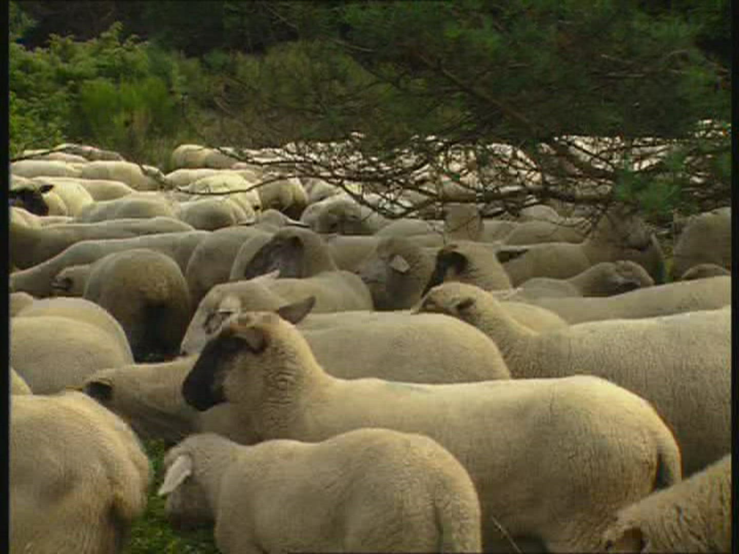> Back of a flock of merino sheep