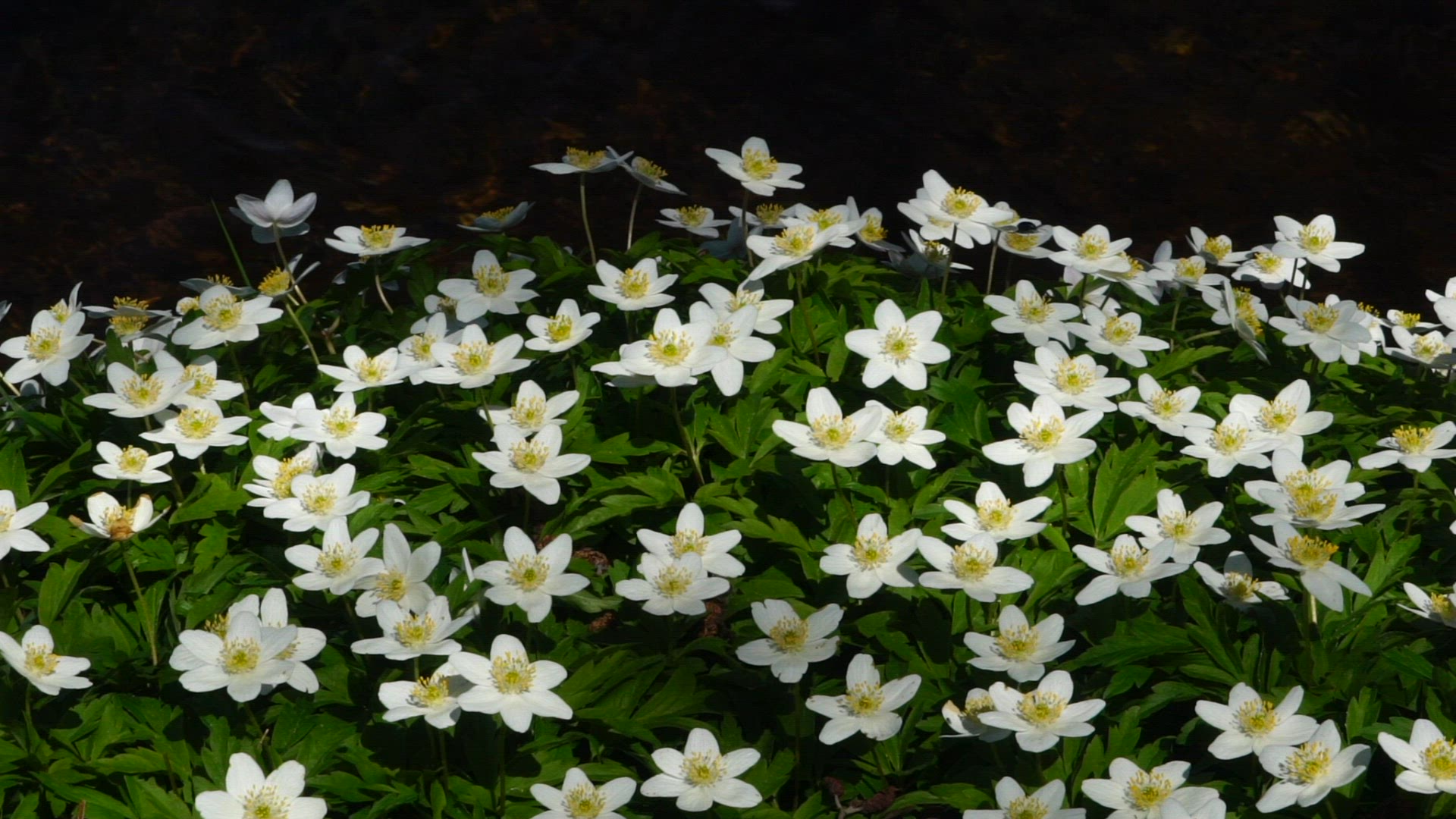 2189008 - wood anemones - slowmotion shot - lake water in background