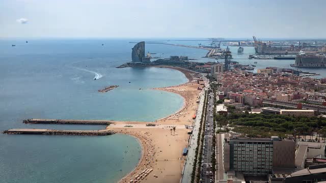 749707 - spain barcelona sunny day beach panorama 4k