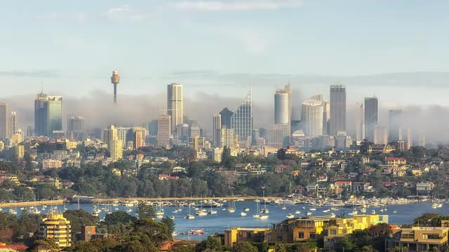 350158 - Aerial view of Sydney Harbour and Sydney Opera House, 4k
