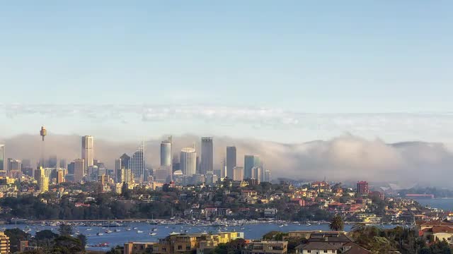 342510 - Panning timelapse of sunrise over Sydney Harbour Bridge and Sydney Harbour in 4k