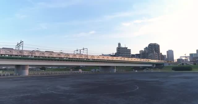 1047069 - Aerial footage of train passing by in Tokyo, Japan