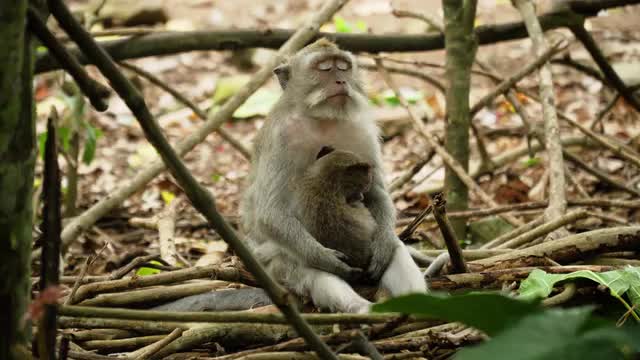 Macaque monkeys moving through jungle 1080P