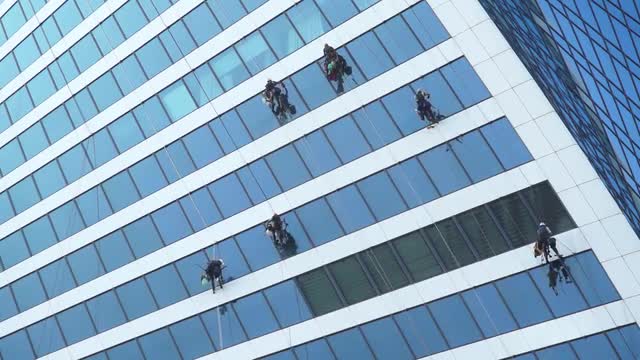 Window washers working on skyscraper