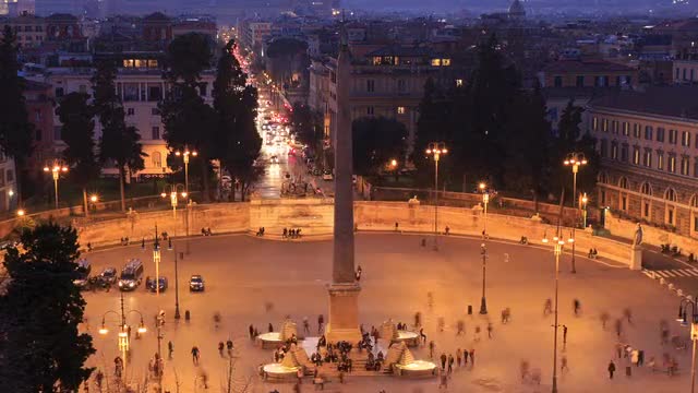 > Piazza del Popolo. Egyptian obelisk. Time Lapse. Rome, Italy