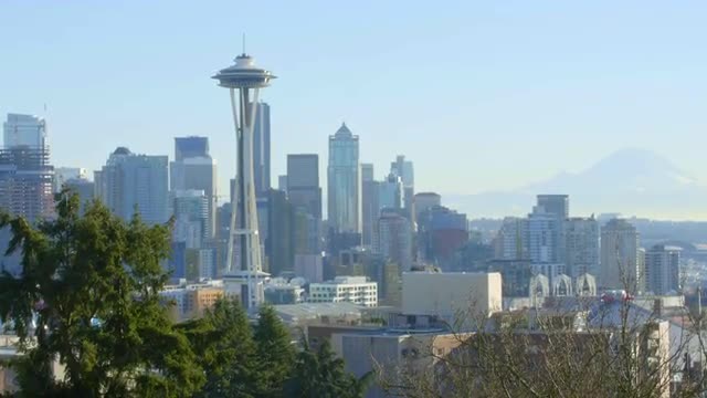 573940 - Tilt up to View of city of Seattle