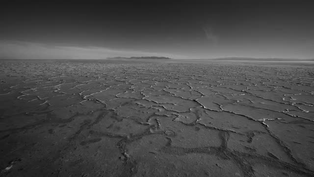 91322 - Expansive shot of the Bonneville Salt Flats in a Utah desert.
