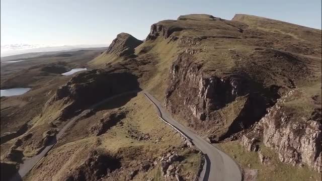 318830 - Aerial shot of a quiet country road on the Isle of Skye (Scotland) revealing landscape