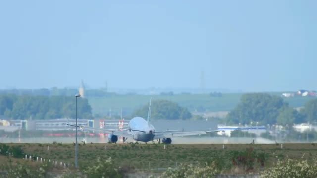 FRANKFURT AM MAIN, GERMANY - SEPTEMBER 6, 2015: ADRIA Airways Airbus 320 OY-JRK landing on runway 25R, slow motion. Unofficial spotting in Fraport on Sep. 6, 2015