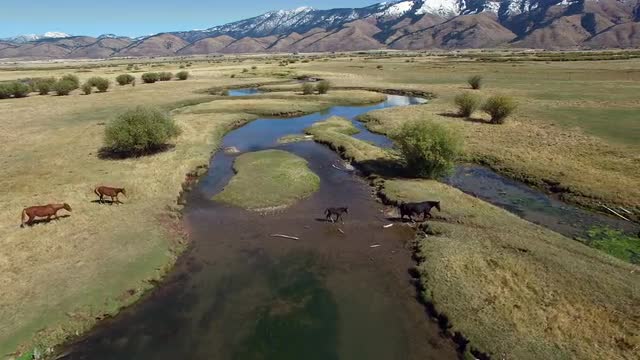 > Aerial France Camargue sunrise horses animal wild cowboy