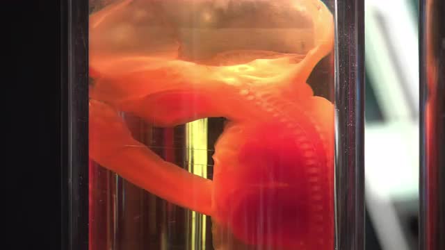 > Baby fetus on display at science lab 4k