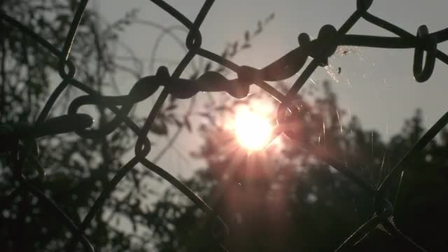 Panning across fence with sunset glare coming in.