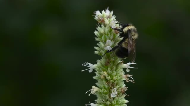 558612 - Bumble Bee Foraging on Flower Stem