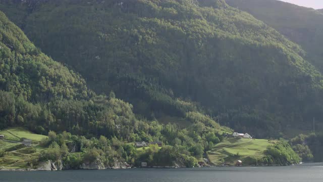 > A ferry crossing a fjord near Kvanndal on the Hardangerfjord.