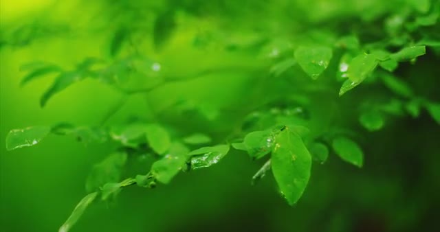 A macro close up of rain drops sitting on lush green leafs sitting underneath a redwood tree in Stanely Park, Vancouver (Canada).