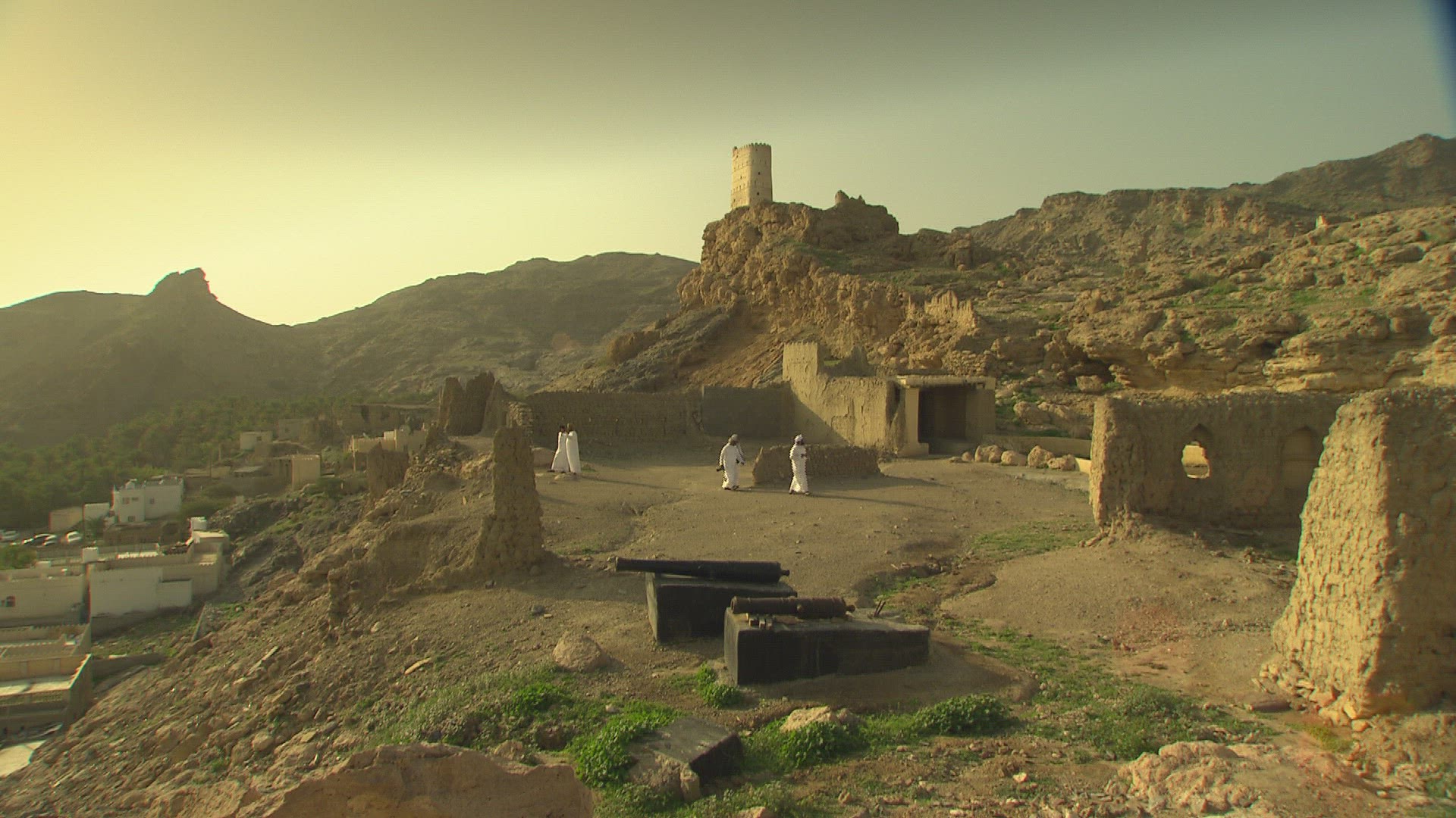 A pan across cliffs to the Tiger's Nest Monastery in Butan.