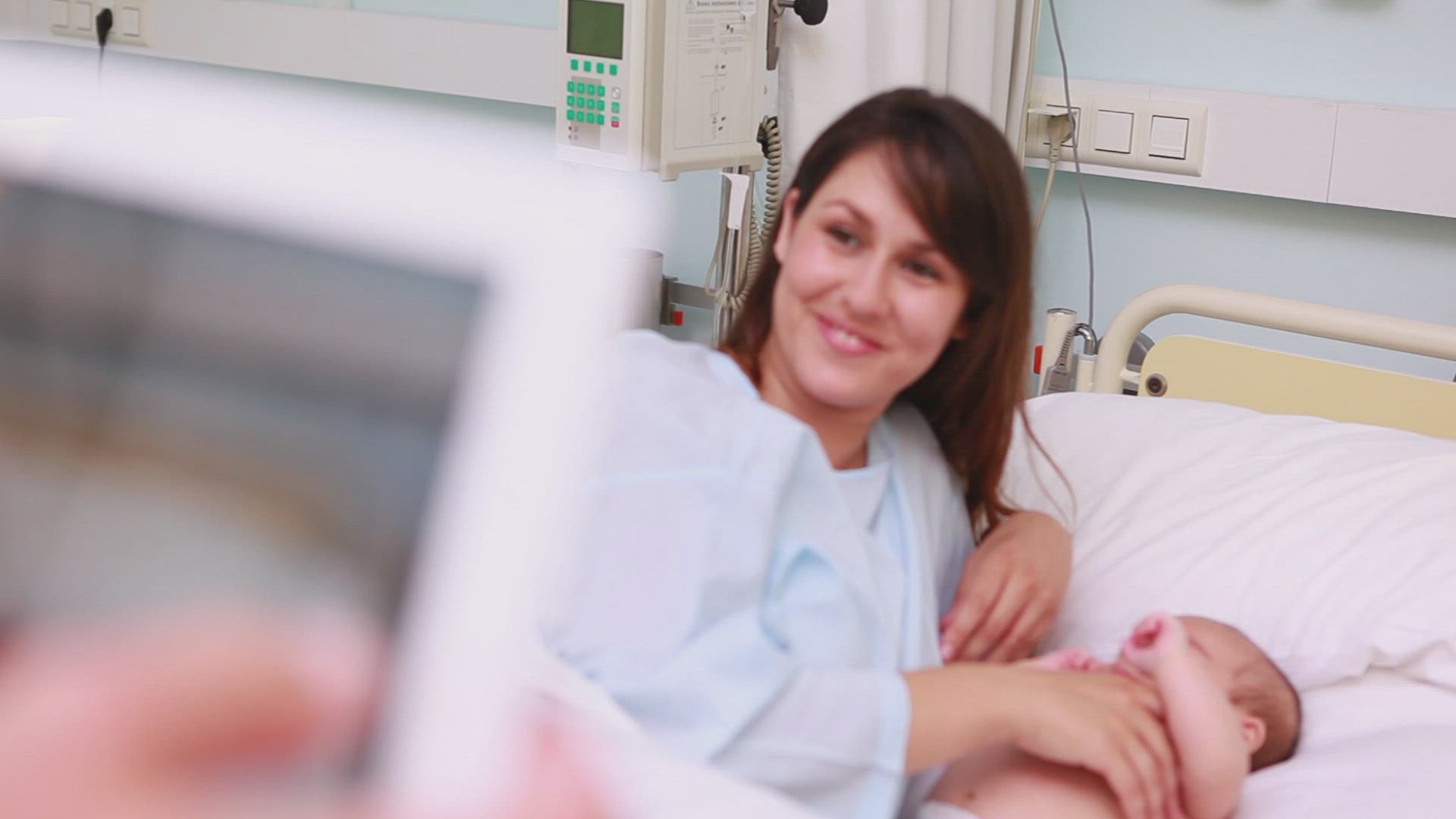 Close-up shot of female hand scrolling photos on pad in airport, takeoff strip with plane in background