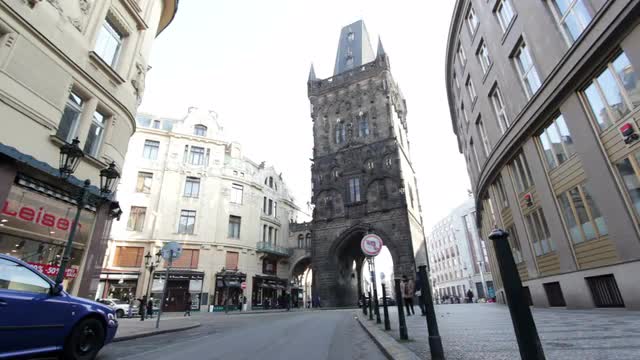 > Prague architecture with bright sunshine