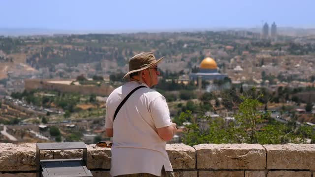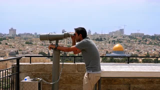 782780 - Tourist looks at the Jerusalem Old City view