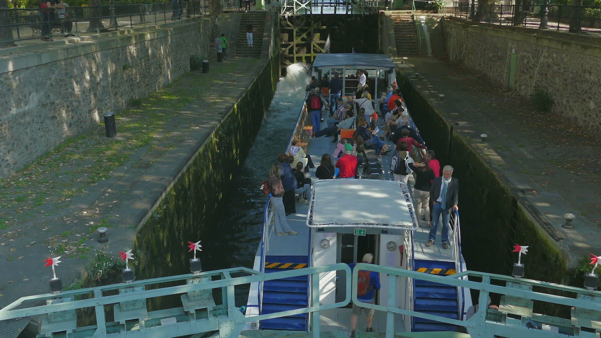 Steadicam shot of a woman coming up to the old vintage front door, opening it with a key and coming in