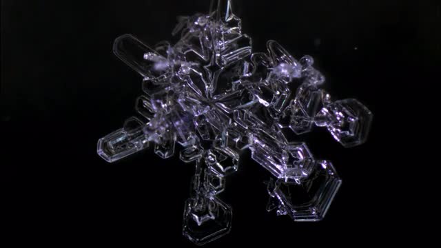 macro timelapse of a sublimating snow flake, reversed play back