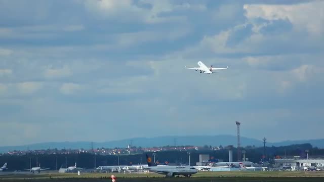 FRANKFURT AM MAIN, GERMANY - SEPTEMBER 4, 2015: Lufthansa Airbus 320 take-off on runway 25C. Unofficial spotting in Fraport on Sep. 4, 2015