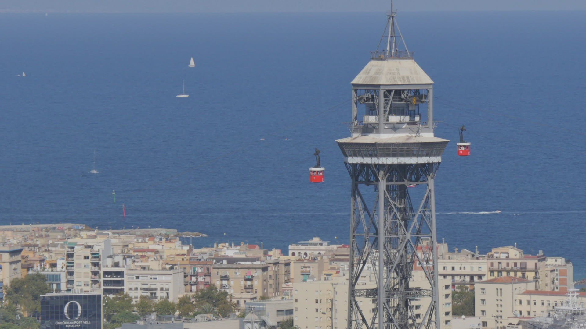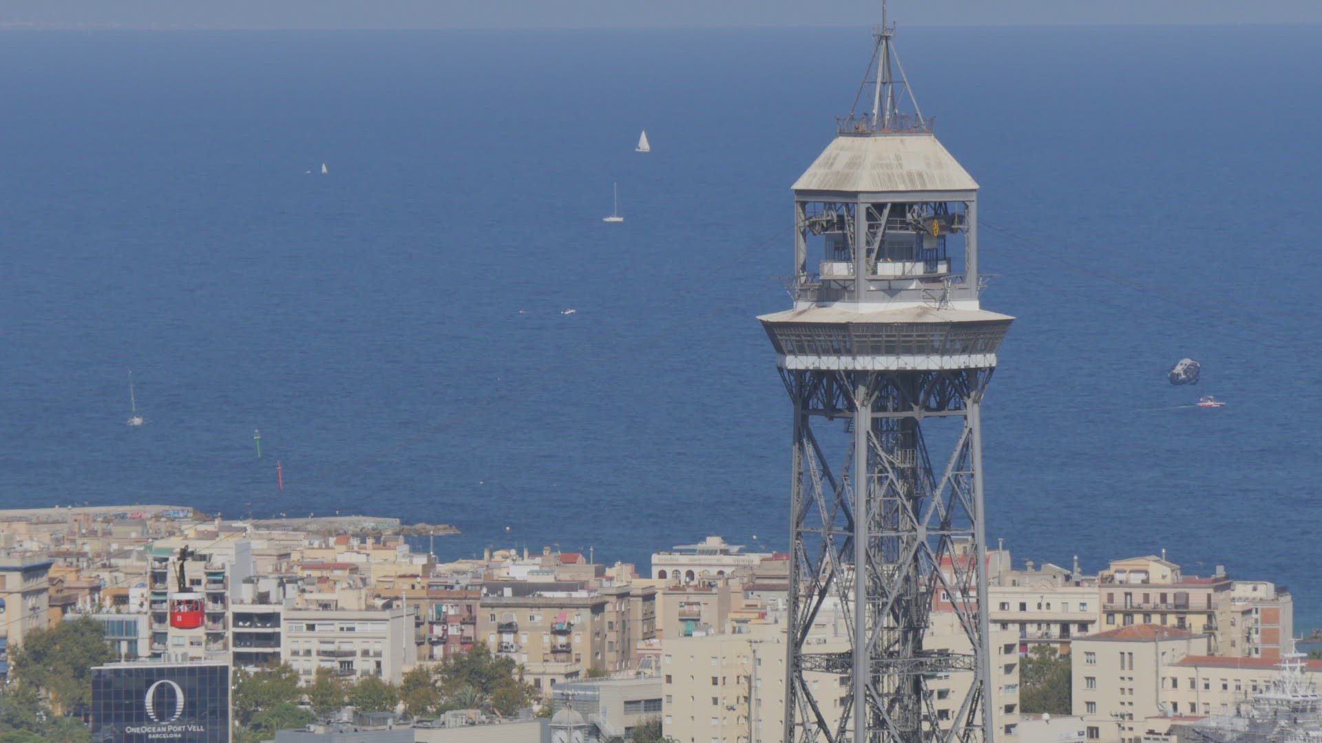 Elevated dusk view over Barcelona city centre, Catalunya, Spain - Time lapse