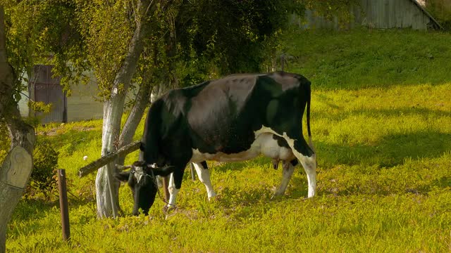> Sheep eat grass. The first spring grass