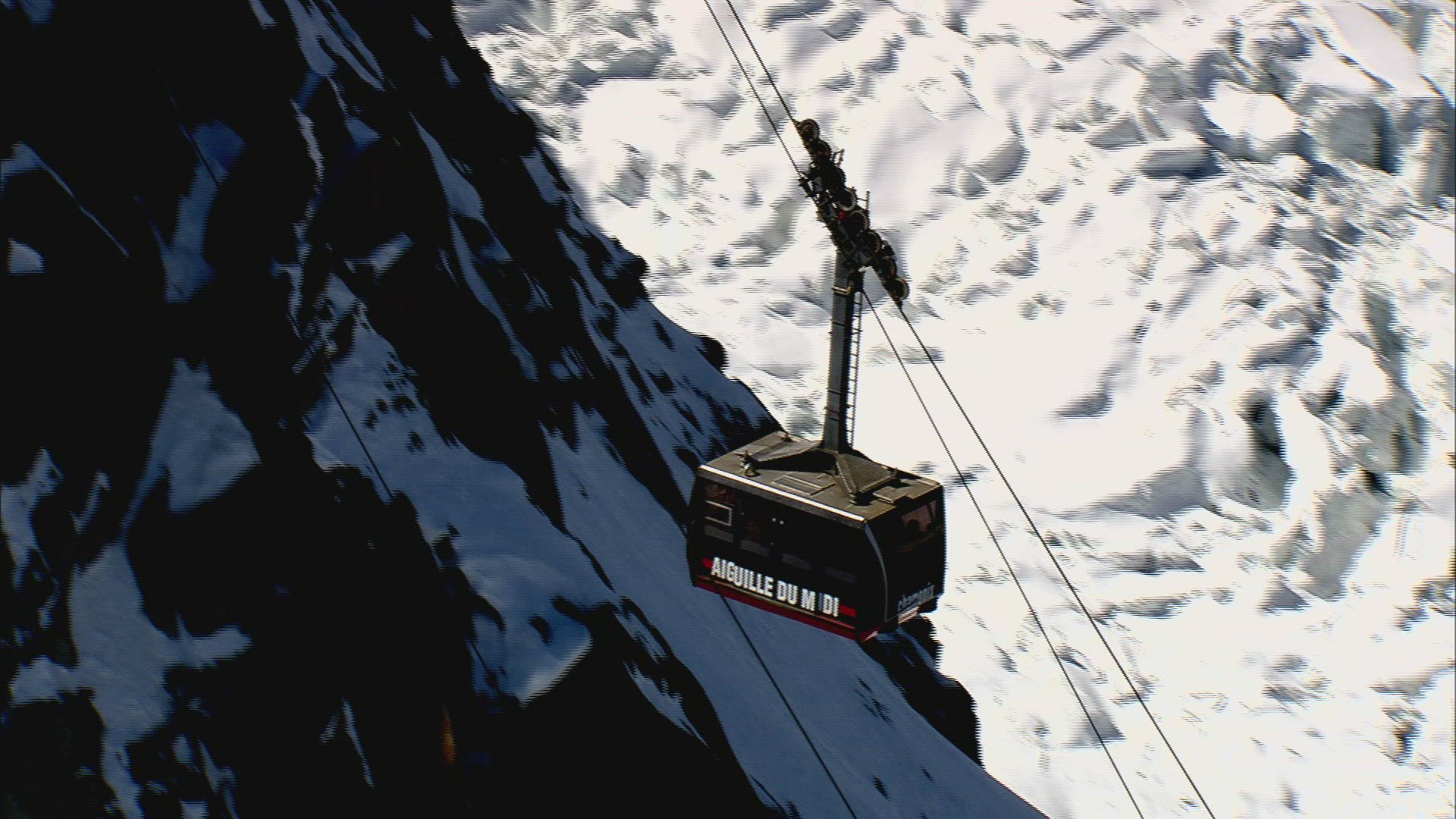 Skiers at the start of the Aiguille du midi, Chamonix-Mont-Blanc, French Alps, Haute Savoie, Chamoni
