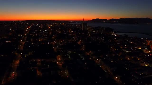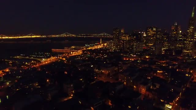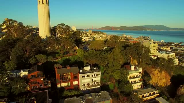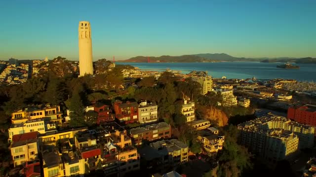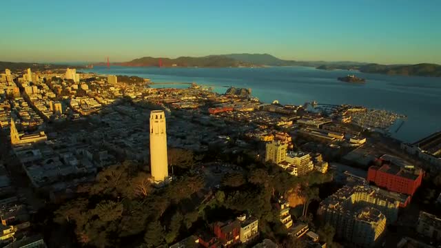Pier 39 looking towards Telegraph Hill, the Coit Tower and the business district, Fisherman's Wharf, San Francisco, California T/lapse